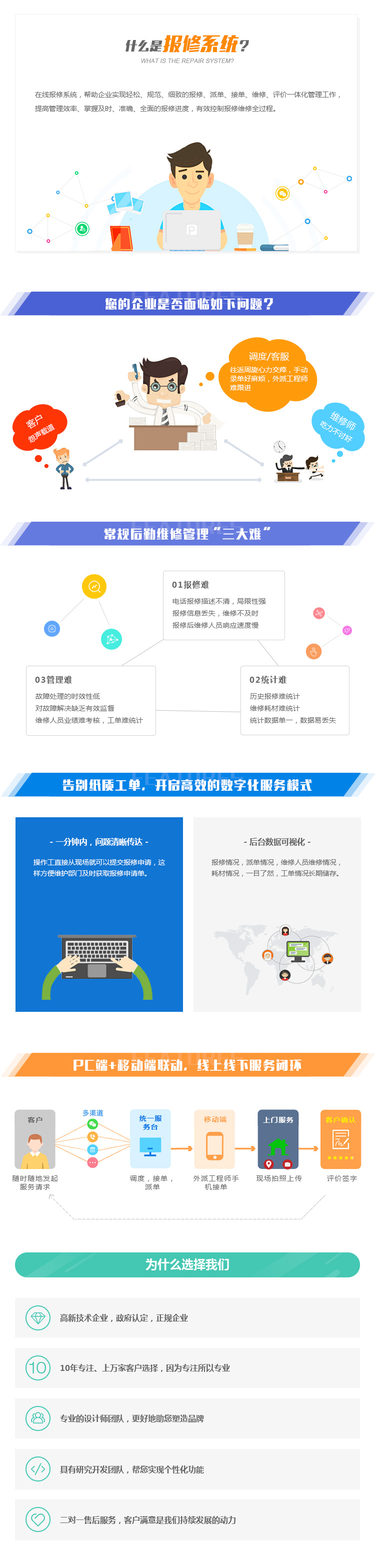 报修情况,派单情况,维修人员维修情况,耗材情况,一目了然,工单情况长期储存。